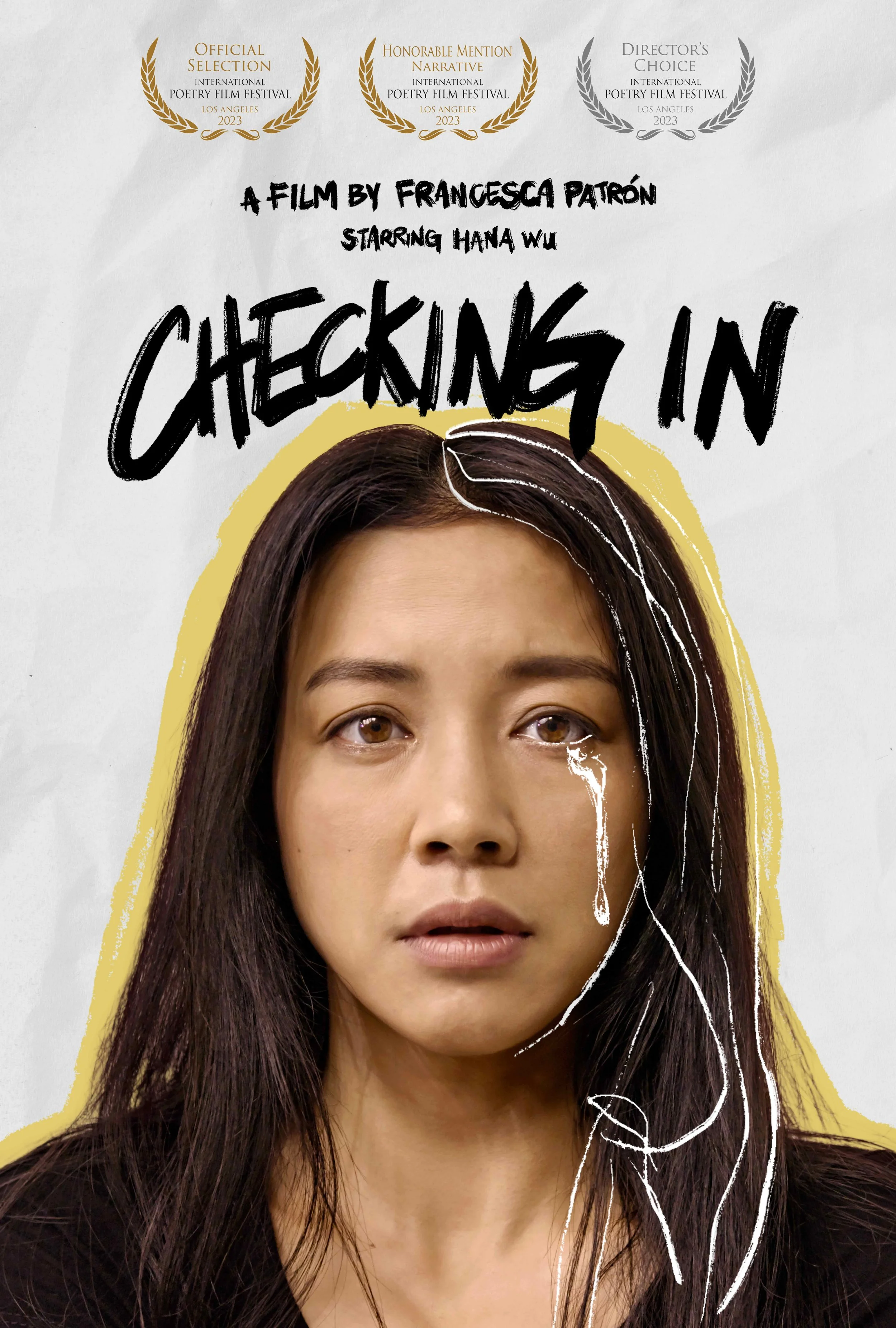 Poster design for Checking In, Director’s Choice and Honorable Mention Narrative Winner at the International Poetry Film Festival 2023.